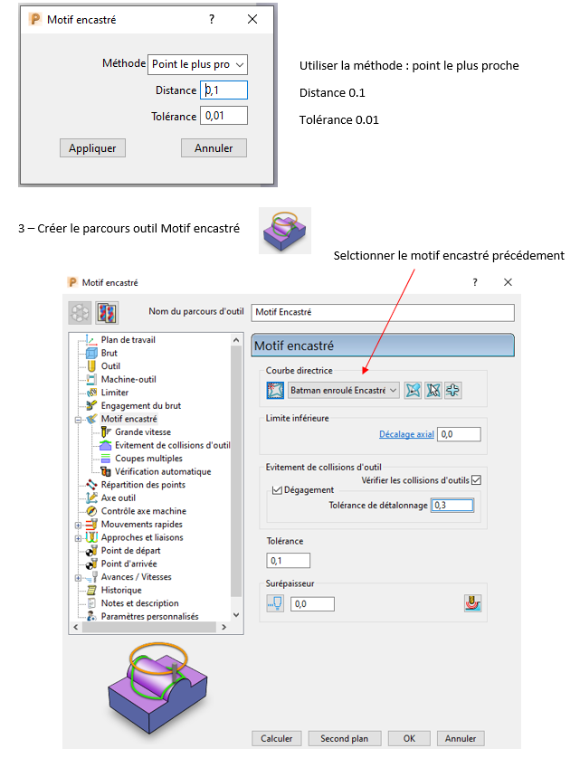 PowerMill : Finition Motif Encastré