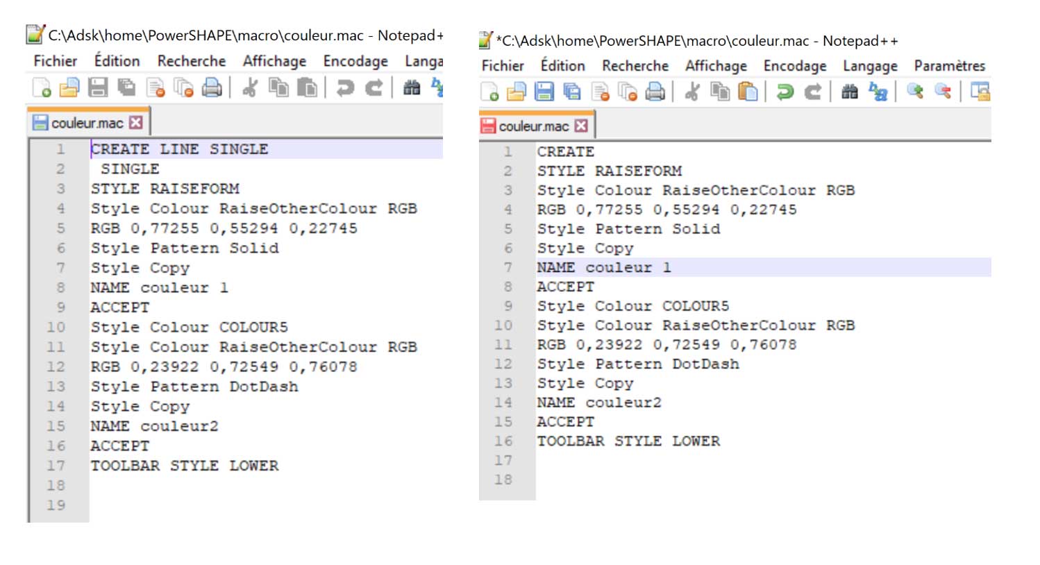 PowerShape Conservation des couleurs personnalisées