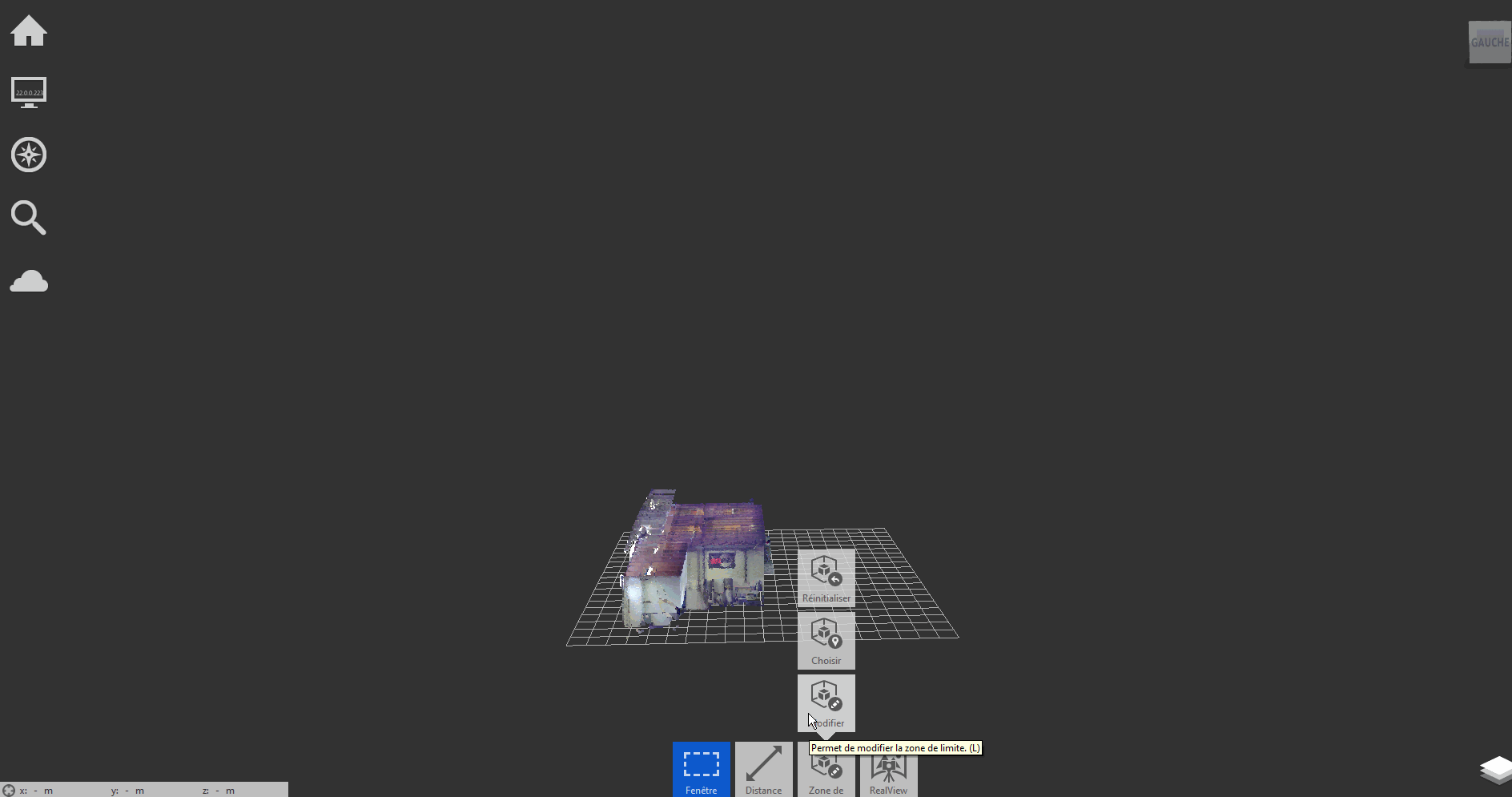 La fonctionnalité « zone de limite » permet de limiter la zone à travailler dans le nuage de points. Elle est la troisième fonction en partie bas de l’écran.