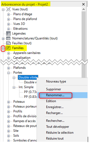 - Effectuer un clic droit sur une famille ou un type