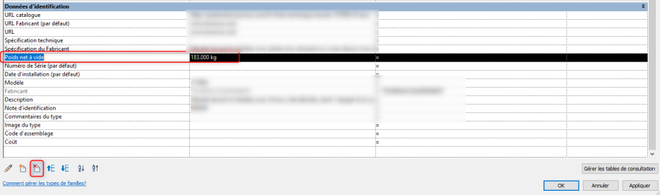 - L’information doit être accessible mais non utilisé dans la nomenclature : modifier le paramètre partagé en paramètre de famille
