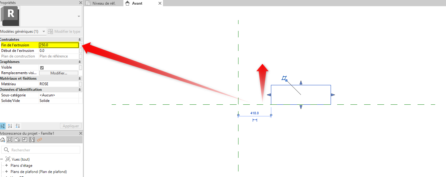Quand vous créez un volume dans une famille Revit, sa direction et sa valeur dépendent du plan de construction sur lequel il est placé :