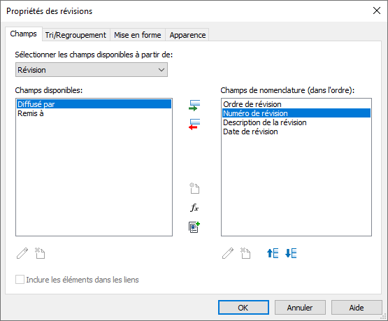 - Creer votre tableau de révision (En réalité une nomenclature de révision) : Onglet "vue" outil "Nomenclature de révision