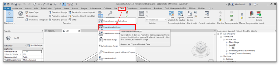 - Allez dans les "Paramètres électriques" depuis l’onglet "Gérer".