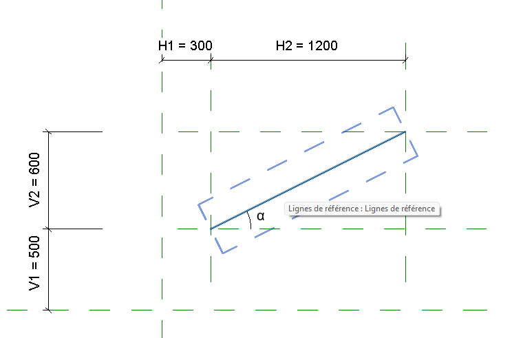 - Verrouiller les extrémités de la ligne aux croisements des plans de référence : utiliser l’outil Aligner => sélectionner un plan de référence => positionner la souris sur la ligne de référence pour la mettre en surbrillance => utiliser la touche tabulation pour faire apparaitre uniquement l’extrémité en surbrillance => cliquer => verrouiller.