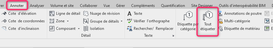 Rappel : cette étiquette fonctionne également pour vos vues en coupe ou élévation
