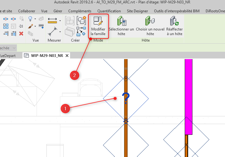 Mais une dernière petite modification reste à effectuer : on souhaiterai voir cette étiquette légèrement décalée du panneau….. …On remodifie la famille…. |