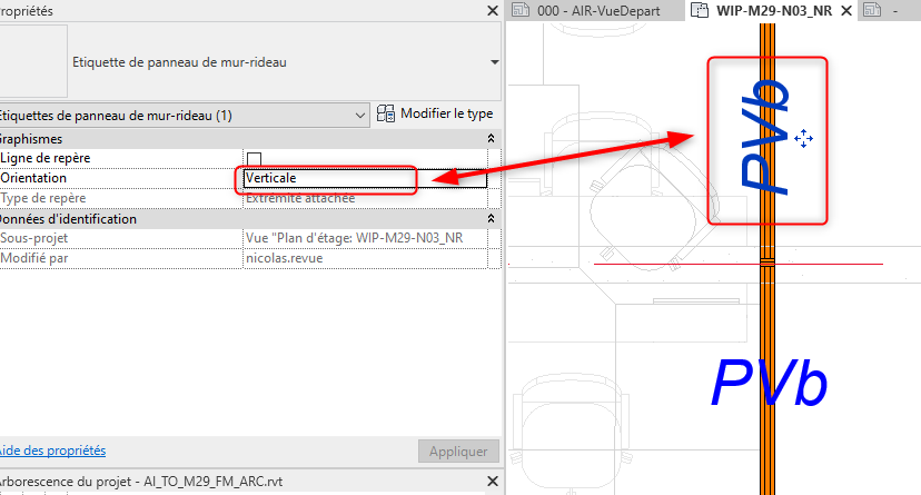 Revit débutant – Etiquette de panneau de mur-rideau