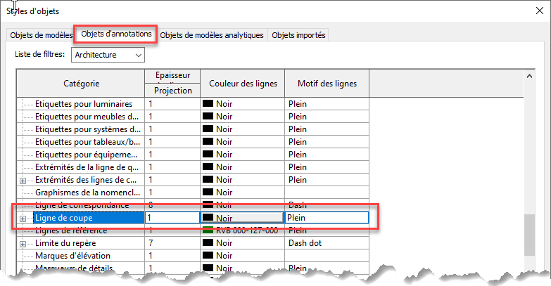 LIGNES DE COUPE REVIT