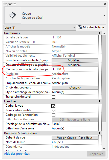 Parfois, le symbole de votre coupe disparaît de la vue lors d’un changement d’échelle…..
