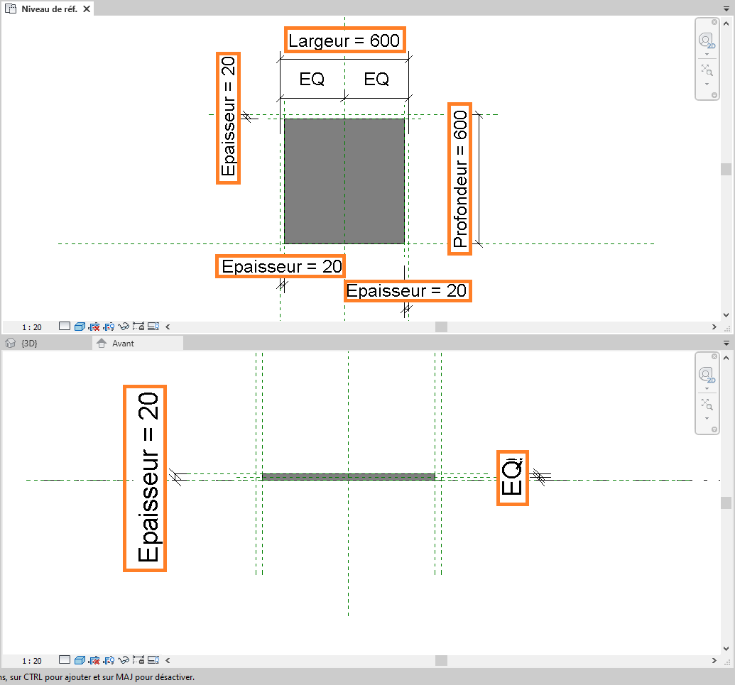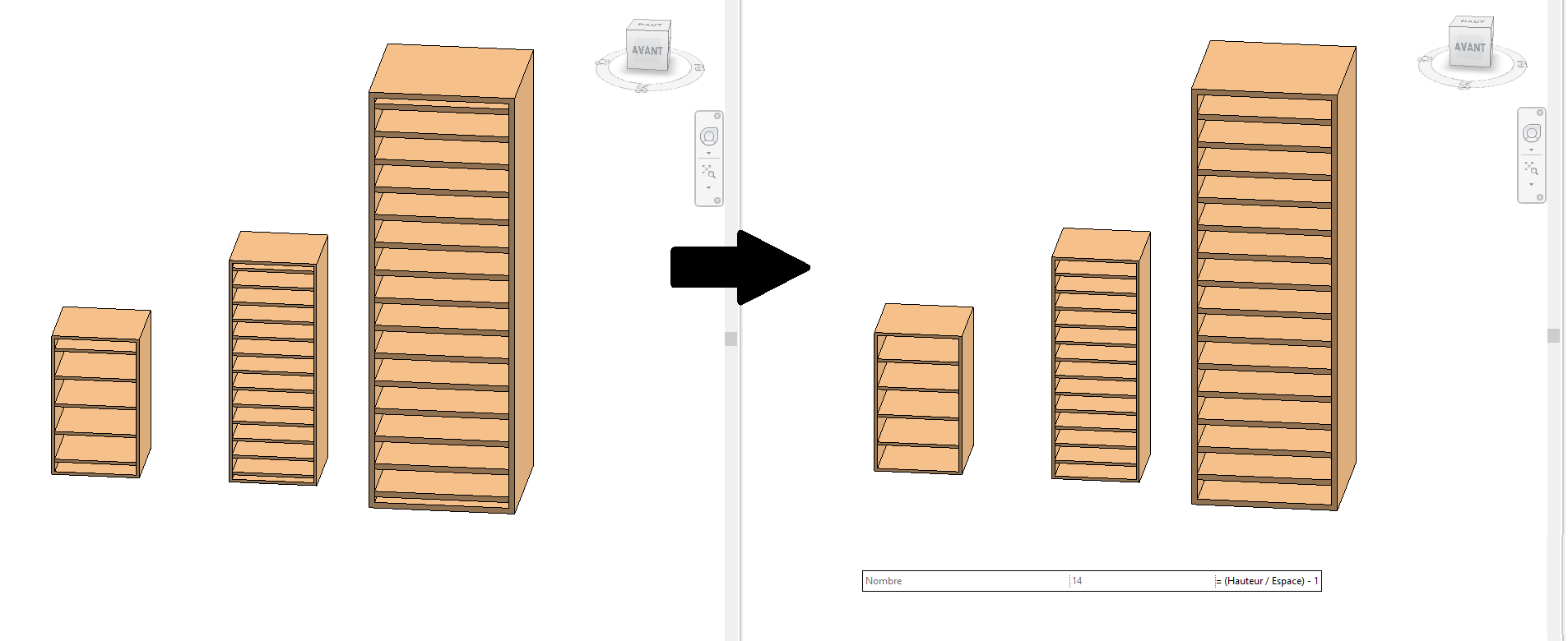 En plus de cette famille de base nous allons imbriquer une famille d’étagère. L’idée étant de répartir cette étagère sur la hauteur de notre meuble tous les 20cm.