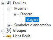 La famille Etagère.rfa apparait dans l’arborescence de la famille du meuble.