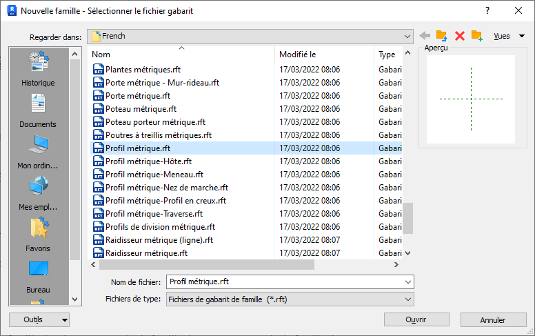 Créez une nouvelle famille depuis le gabarit adapté à votre modélisation (ici « Profil métrique ») :