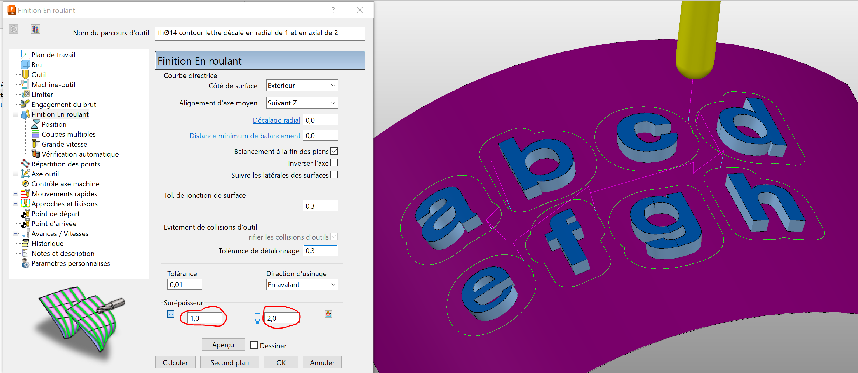 - Mettre la même tolérance d’usinage que notre futur parcours décalage 3D.