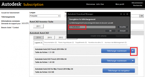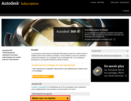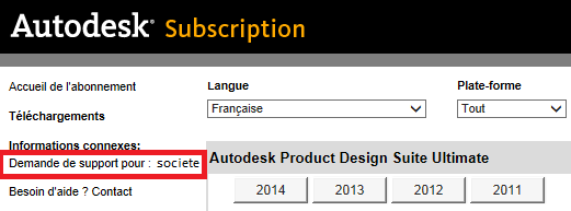 Vous avez un abonnement et vous voulez télécharger une version logiciel d'Autodesk depuis le Centre d'Abonnement.(Login + Mot de passe)