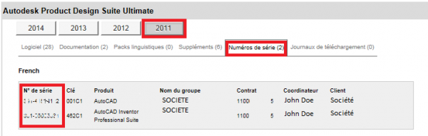 Depuis le Centre d'Abonnement vous pouvez obtenir les Numéro de Série et Clé (CD Key) de versions antèrieures à 2014 (2011, 2012, 2013)