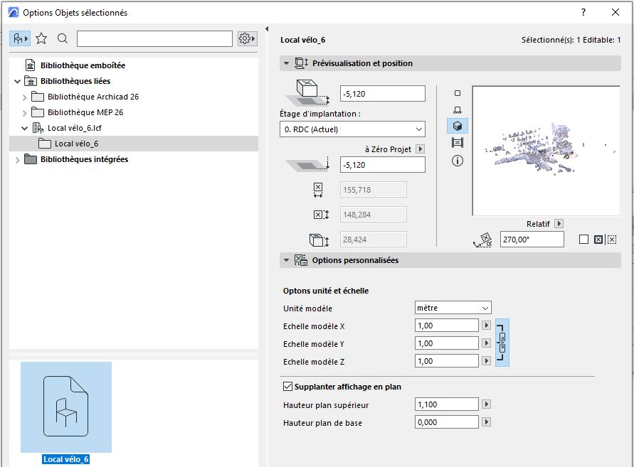 Par défaut, le nuage sera affiché conformément à la hauteur actuelle du Plan de coupe de Plan d'étage. Si besoin, il est possible de supplanter cette limite en appliquant des valeurs spécifiques au nuage.